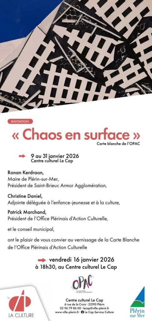 Vernissage le vendredi 10 janvier 2025 à 18h30 au CAP – Plérin