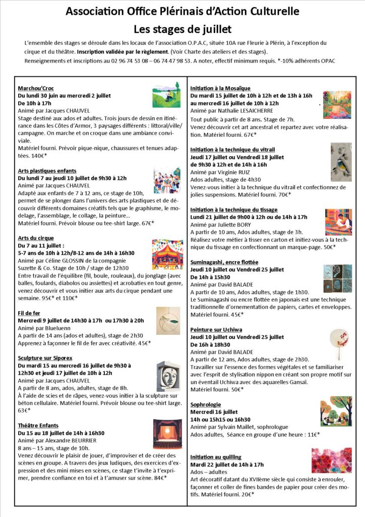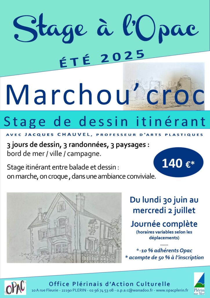 3 randonnées au rythme de la balade (≈ 10 km) dans une ambiance décontractée. Ces marches sont ponctuées d’arrêts.  Croquis selon l’intérêt du sujet ou du site.  Zone exploitée : Les Côtes d’Armor.
