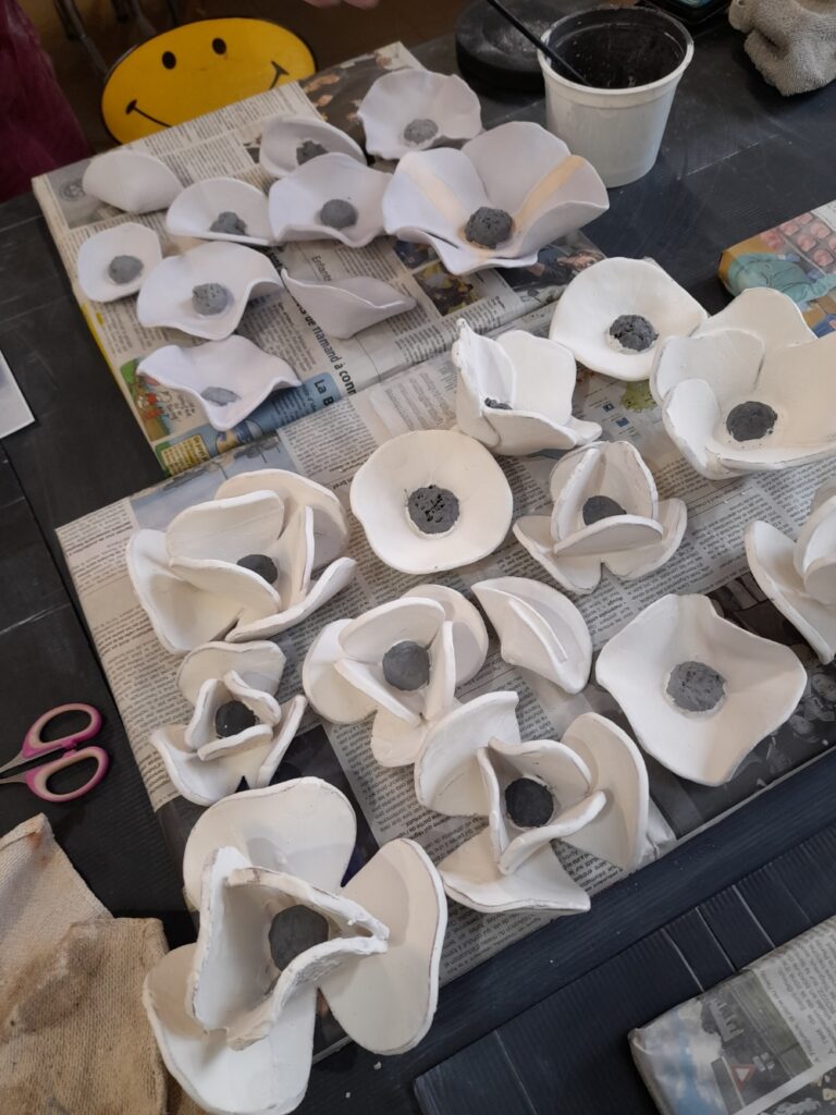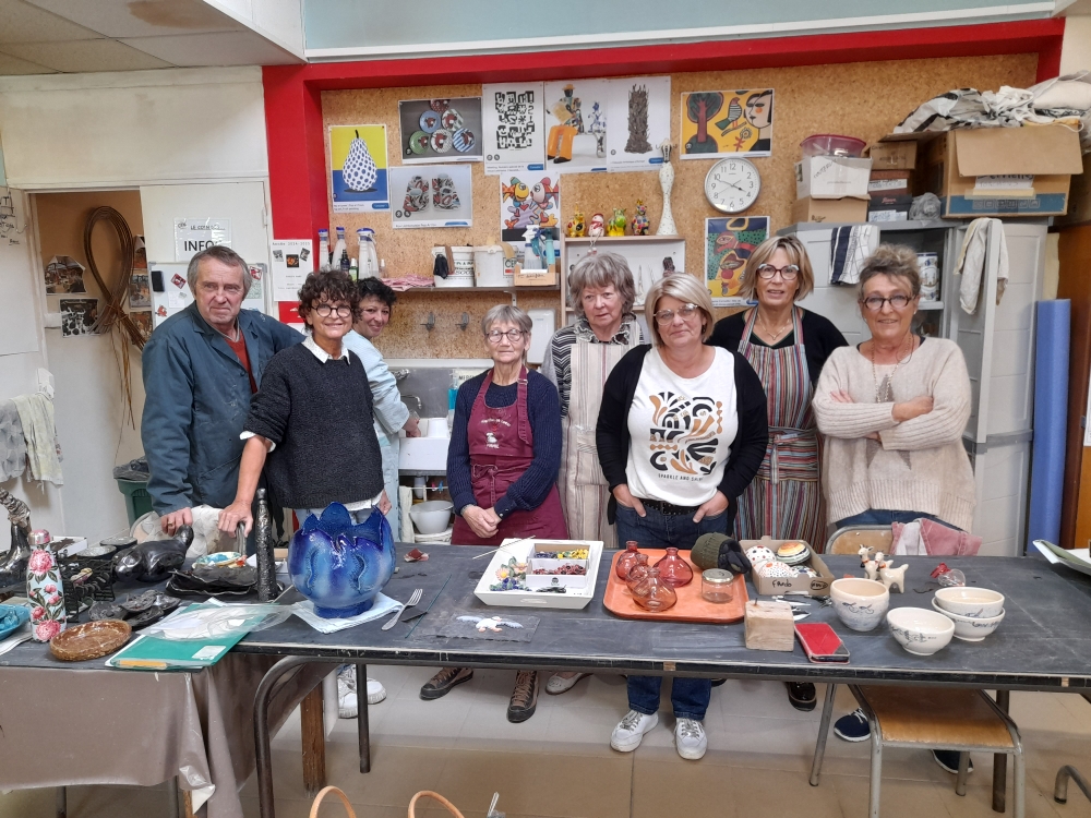 /Une partie de l’équipe des adhérents en pleine préparation du marché de Noël au profit du Téléthon